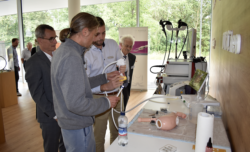 Nach der Präsentation zu den Geschäftsfeldern des Unternehmens durch den Vorstandsvorsitzenden Professor Dr. Marc O. Schurr, durften Interessierte selbst Hand anlegen und am Modell endoskopieren: